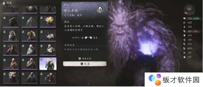 老人参精是游戏中的一个精魄,这个精魄的品质是特品。效果是化身老人参精,以根生根,唤出小人参精扑打对手。携带效果是增加少许召喚物的生命上限。