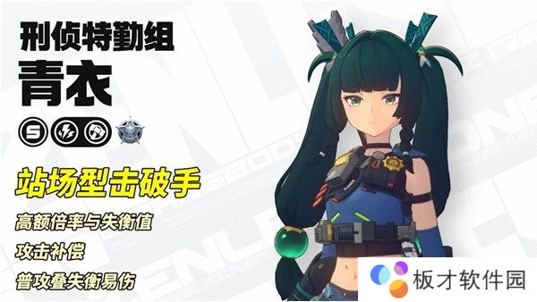 青衣作为新上线的电属性站场型击破手,隶属于以朱鸢为队长的刑侦特勤组,因其具有非常强力的失衡效益及电属性异常叠层效率,成为新一代的击破位T0
