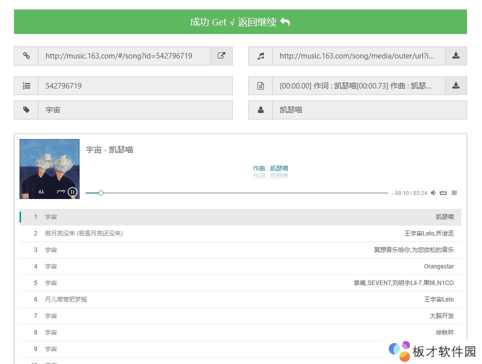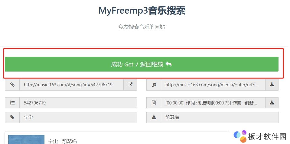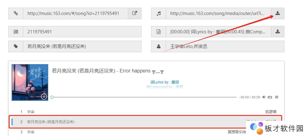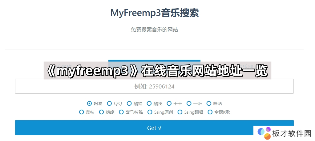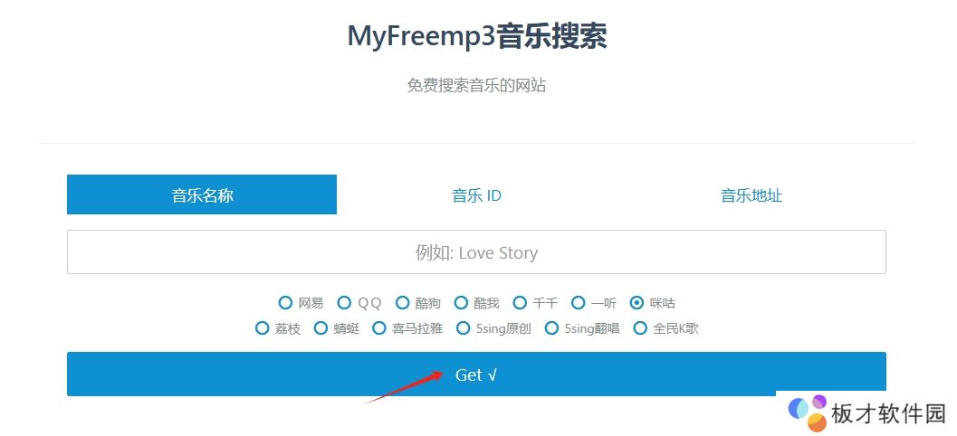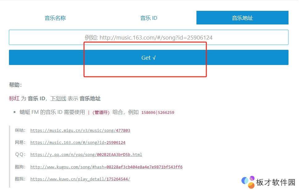 1、复制上方链接进入浏览器粘贴并跳转,然后输入歌曲名称点击“get”。