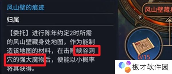 风山壁的痕迹:击杀峡谷洞穴的强大魔物掉落,风山壁的信物:魔方阵8层的魔物之屋会掉落。