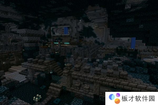 1、远古城市通常生成于深暗之域,是一种大型的地下结构,主体由深板岩及其变种方块构成。