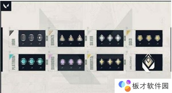2、游戏中一共有8个段位,每个段位都有三个等级,最高段位是Valorant。