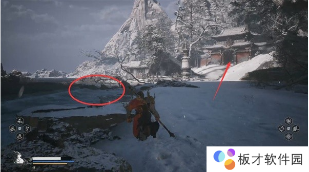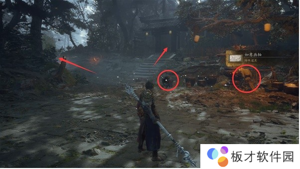 5、看到黄色颗粒在飘的时候,跟着颗粒走就能找到土地庙;