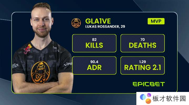 丹麦指挥gla1ve在四张地图中打出全队最高rating——1.29,并在决胜图Dust2中打出1.83的rating奠定胜局。