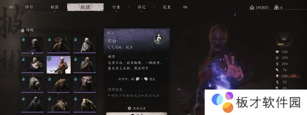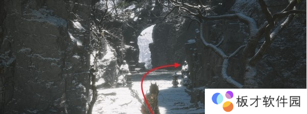 第一次战斗结束后,需要进入山洞继续沿着唯一路线往前走,走到室外落雪的石板路后,继续往前就是一片开阔区域,在这里第二次击败不白即可获得精魄。旁边还有一个蒲团。