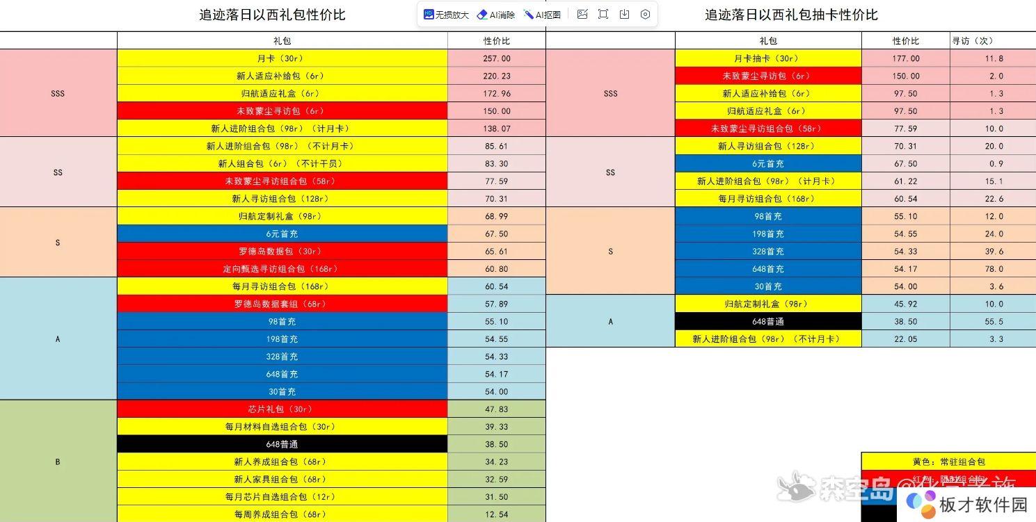 6米的”未致蒙尘寻访包“折价幅度289.2%,战胜了包括”新人月卡组合包“在内的所有礼包,仅次于月卡(521%)。