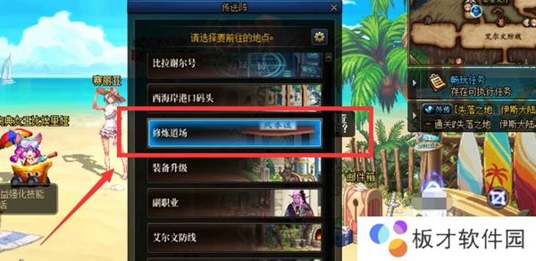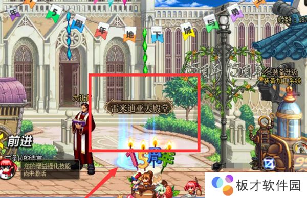 2、玩家前往地下城选择房间传送到修炼道馆位置,到达后在右侧找到雷米迪亚大殿堂进入。