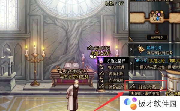 玩家前往地下城,选择房间传送到修炼道馆右侧找到雷米迪亚大殿堂进入,点击矛盾之圣杯在弹出的菜单栏打开融合装备的页面,将需要融合的装备与材料放入对应卡槽后,点击装备融合按键即可。