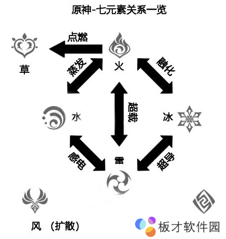 原神七元素屋性克制关系是在原神中七元素属性克制关系为互相克制,火元素、水元素、雷元素、风元素、冰元素属性克制关系相互,草元素和岩元素两种元素属性单向克制,只有固定的一种元素属性才会产生克制的效果。