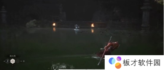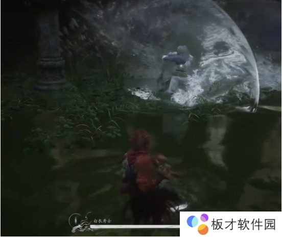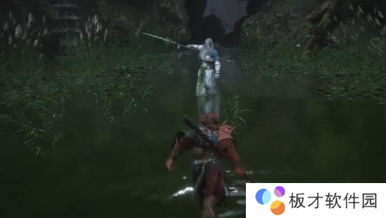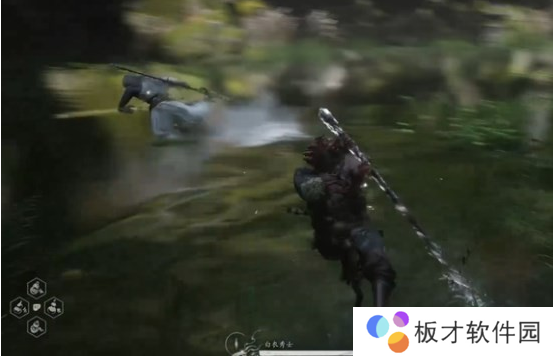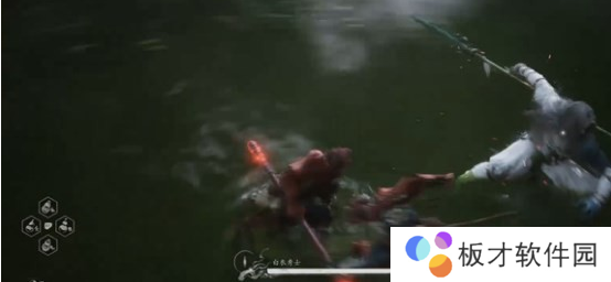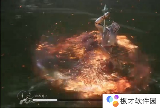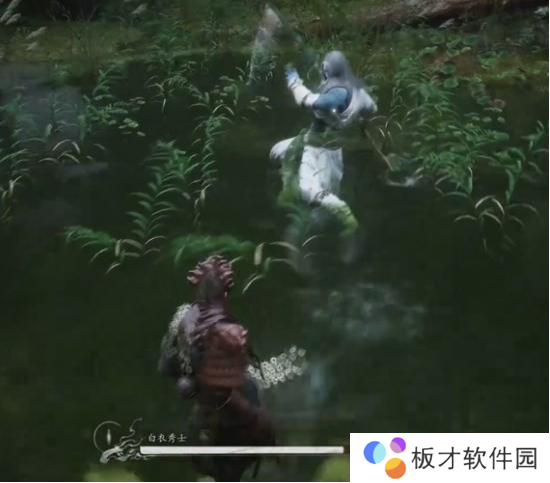 开局白衣秀士会抢先发动攻击,如下图所示,BOSS会使用一招直枪挺刺,我们开局直接往右边拉走即可,也可以空格闪避。