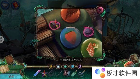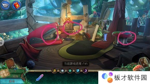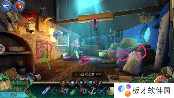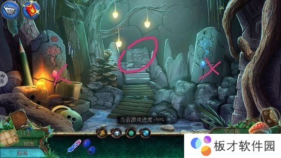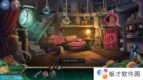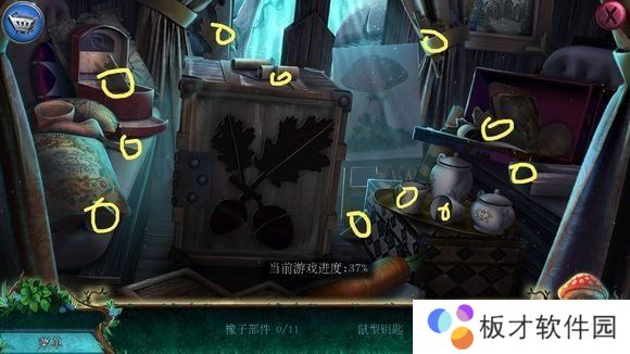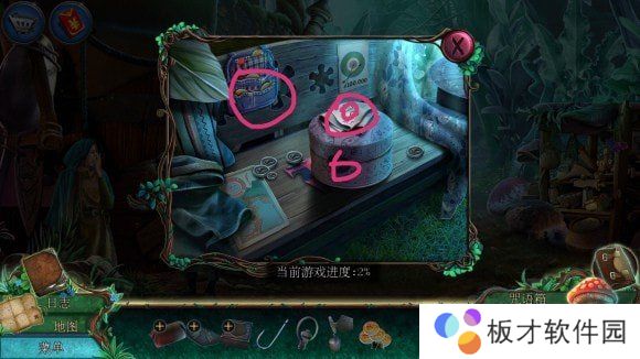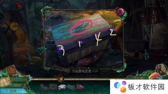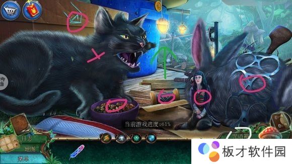 右侧箱子——安按钮,按顺序点击打开箱子——刷子、老鼠耳朵、魔法符