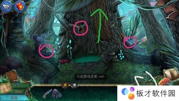 右侧,树叶——点开,有洞口