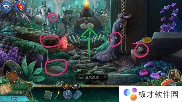 老鼠——根据说明完成小游戏(两个同色可消除)——再用咒语击败老鼠(点击物料条上端发光的咒语符号)——激活路障场景