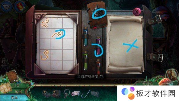 放咒语书——点击魔法符至右侧,倒对应有色试管——创造咒语(主画面物料条上端可以看到)