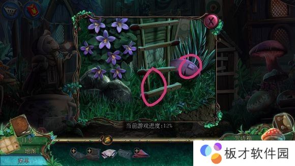 音乐木盒上方,台子——安水晶(4个)——按说明点亮正确栅栏(数字3代表相邻3个栅栏是亮的,类此,最先点击顶部4周围的栅栏)——紫色水晶
