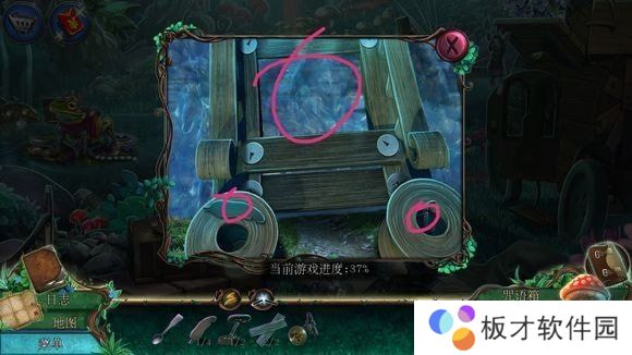 木车——安锁盘,放密码纸——点击点亮密码——铁锹、齿轮