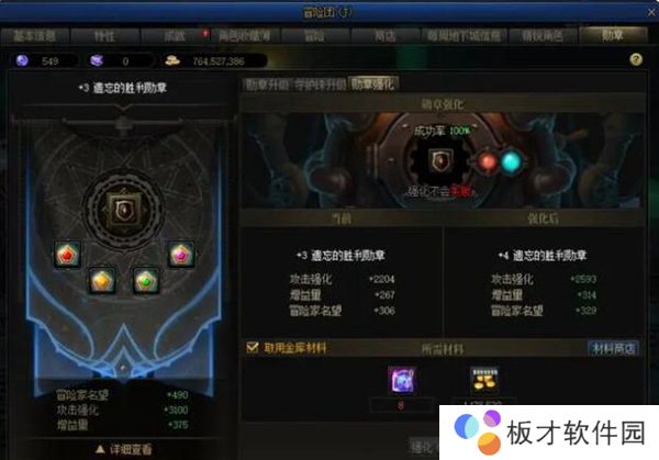 升级勋章和守护珠的成功率为100%,玩家不必担心升级失败导致材料浪费的问题。