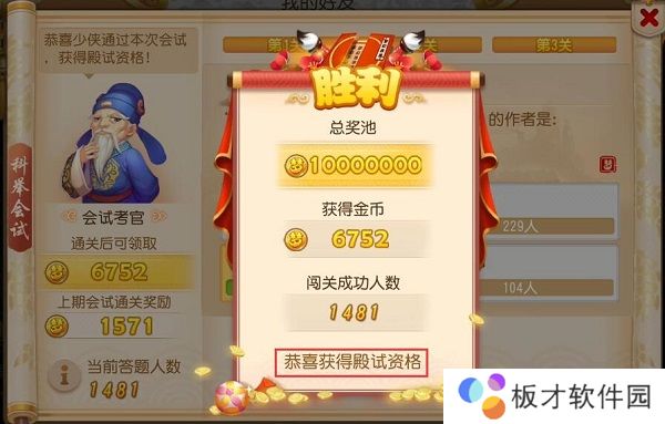 5、通过会试后,殿试的时间是当天16:30,只有在乡试中得到前20名的玩家才能进入殿试。