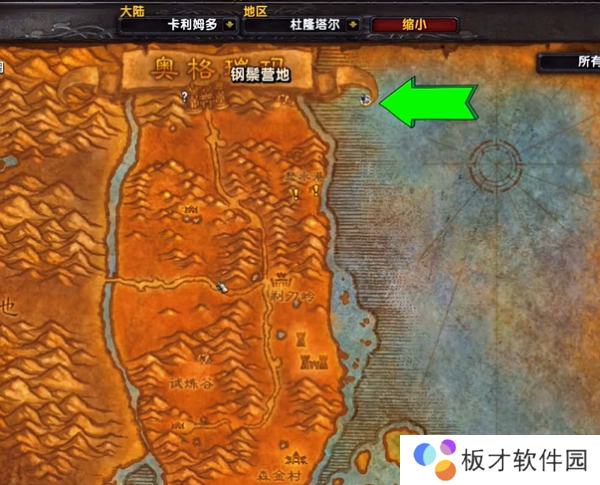 2、然后玩家需要在奥格瑞玛的地上最上方开始往外游,直到游到图标处。