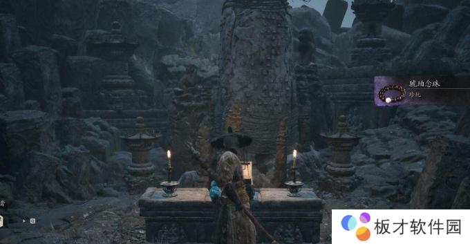 5、当你从洞口出来后,你会看到一个台子上有宝箱。你需要打开这个宝箱,因为琥珀念珠就在这个箱子里。只有打开宝箱,你才能拿到琥珀念珠。