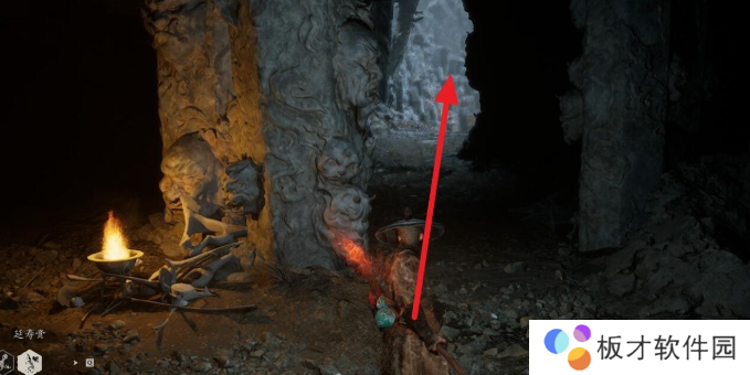4、进入洞后,你需要往火盆的右侧转。在那里,你会看到一个洞口。你需要从这个洞口出去。