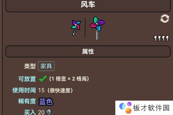 介绍:风车是一类属于家具的小玩具物品,放置后,在有风的情况下会转动,转速取决于当前区域的风速,它可以在大风天时从商人处以20银币购买。
