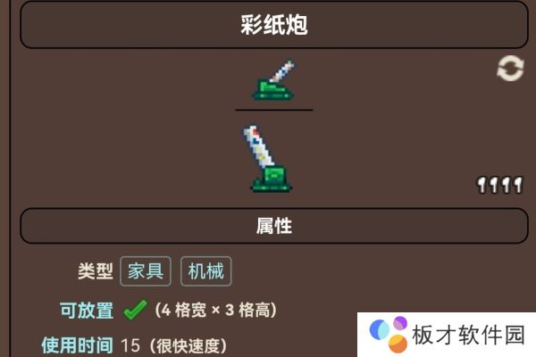 介绍:彩纸炮是一件困难模式下的小玩具类机械物品,它会发射彩纸,它只会产生视觉上的效果,不会对玩家或敌怪造成伤害。
