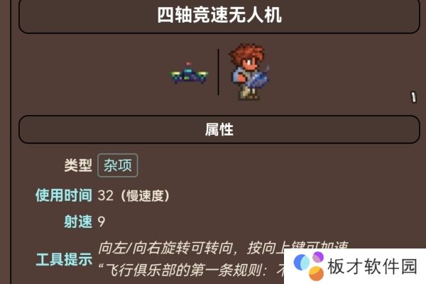 介绍:四轴竞速无人机是个世纪之花后的小玩具物品,可以从机器侠处以10金币的价格购买。