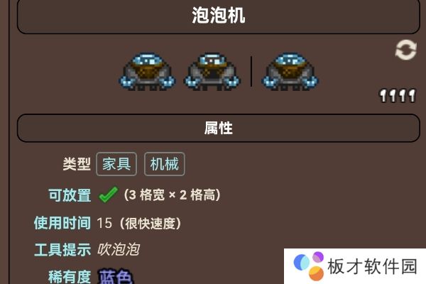 介绍:泡泡机是一种玩具类家具机械,泡泡机可以以4金币的价格从派对女孩处(部分版本)在白天/(3DS和前代主机版)在任何时间购买。