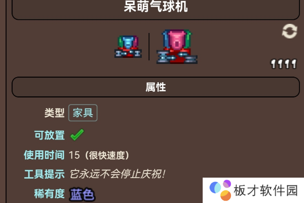 史莱姆皇后在被击败后总会掉落25–75个这种气球,在 Celebrationmk10 和 get fixed boi 世界中,它还能掉落自丛林宝箱怪。