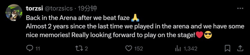 Ádám Torzsás | torzsi:“击败FaZe重返竞技场。距离上次在竞技场比赛已经快2年了,我们留下了一些美好的回忆!真的很期待在舞台上比赛!”