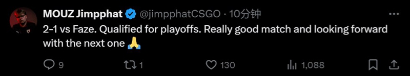 Jimi Salo | Jimpphat:“2-1 FaZe,晋级淘汰赛。真心精彩的比赛,期待下一战!”