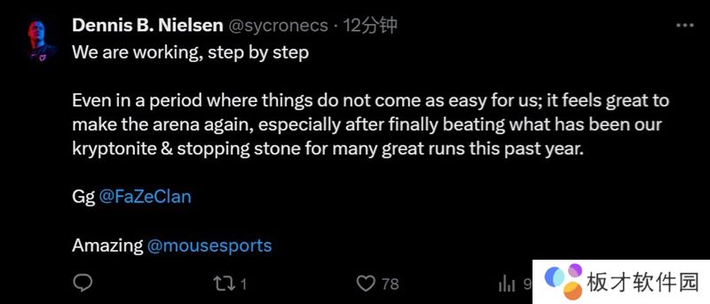 Dennis Nielsen | sycrone:“我们正一步一个脚印努力,即使在艰难时期,再次打进竞技场的感觉也很好。尤其是在过去的一年里,我们终于战胜了我们的拦路虎。GG FaZe。”