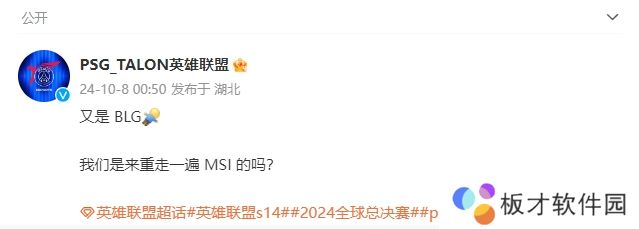 直播吧10月8日讯今日S14瑞士轮第四轮抽签结果确定,LPL赛区无内战,BLG交手PSG,失败者将告别本届世界赛,为此PSG官博更新:又是BLG!我们是来重走一遍MSI的吗?