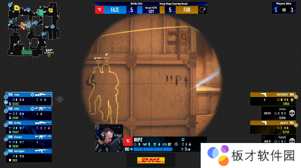 FURIA先做进攻方,一上来手枪局直接选择五人爆弹B区,凭借KSCERATO的三杀发挥轻松拿下胜利。次回合FaZe纯e。