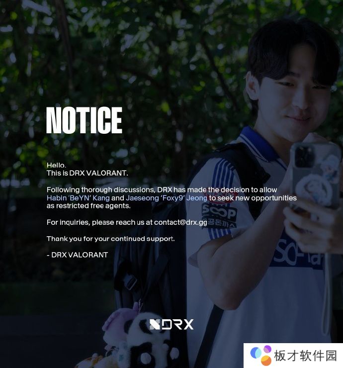 DRX官宣:BeYN和Foxy9以受限制的自由选手身份寻求新的机会。