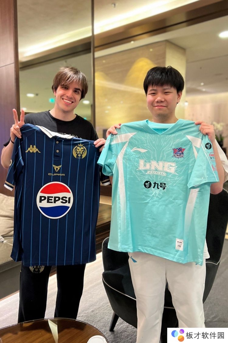 直播吧10月8日讯 LNG电子竞技俱乐部官博更新,发布Shad0w和Elyoya交换队服的照片,并配文:我们豆和老朋友MDK见面啦!MDK的大家表示很喜欢瓜的队服颜色。