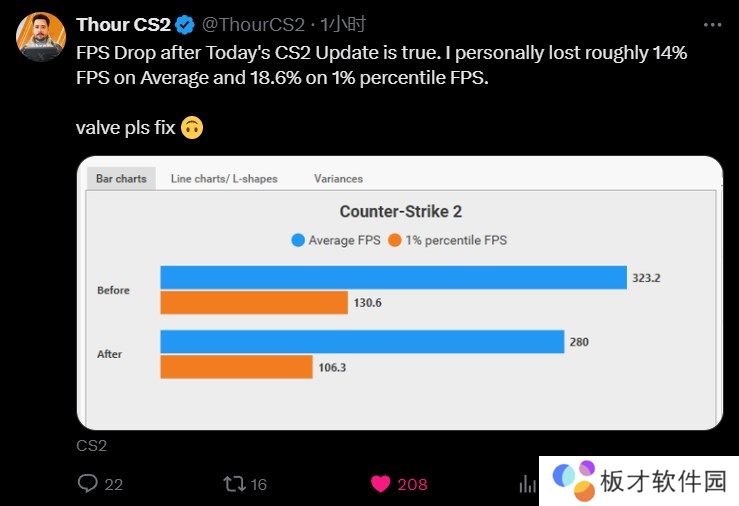 他在进行测试后,发现今天的更新之后,游戏FPS平均降幅达到了14%,而1% FPS的降幅达到了18.6%。对于电脑配置不佳的小伙伴们来说,本次更新更是让本不富裕的家庭雪上加霜。