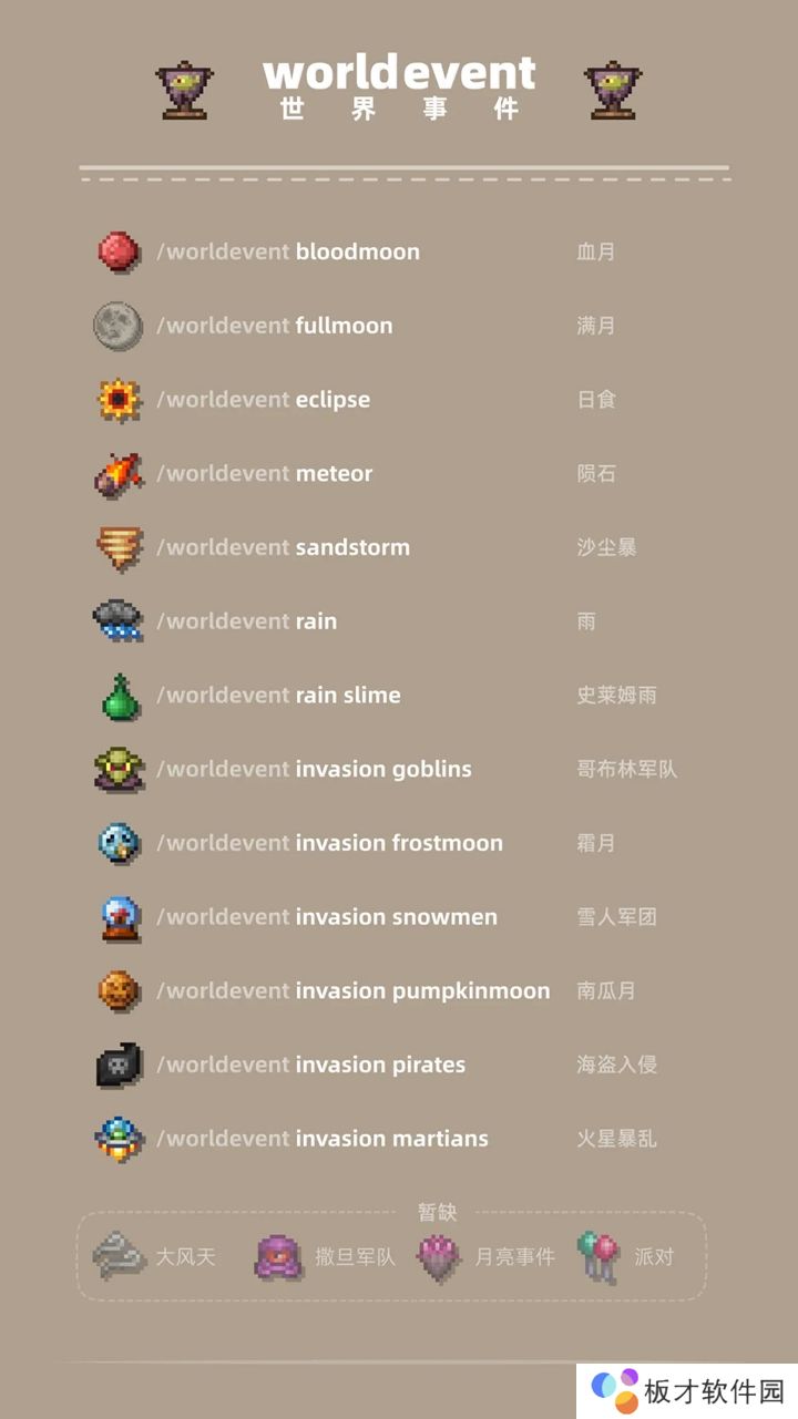 以上就是泰拉瑞亚指令代码大全-泰拉瑞亚物品指令代码大全的简单介绍,想要了解更多相关内容的小伙伴可以持续关注本站,这里每天会为大家推送最新最全的攻略,一定不要错过哦。网发此文仅为传递信息,不代表认同其观点或证实其描述。同时文中图片应用自网络,如有侵权请联系删除。