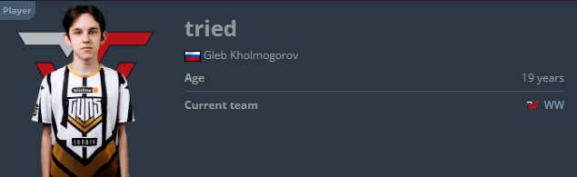 Gleb Kholmogorov | tried(从HLTV的定妆照看,tried确实也是一小只)