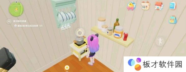 2.在房间的灶台上做三个菜,然后在背包中把这三个菜摆出来,等派对开始和好友享用。找到NPC卡清跟她对话,用金币购买3个礼花。然后给自己列表中的好友发送派对邀请,然后等待好友加入派对就可以了。