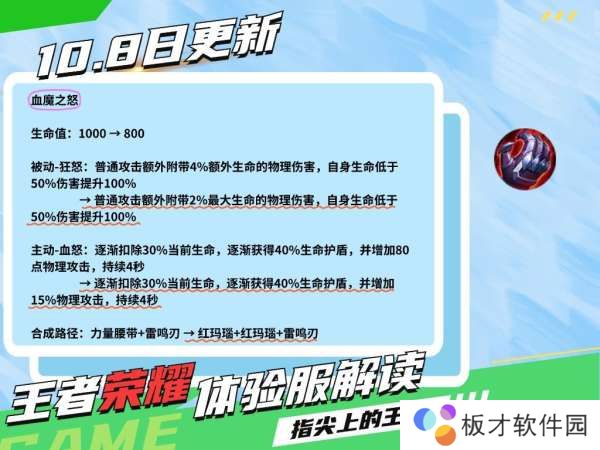 血魔之怒的调整方向,纯肉影响的只是基础血量和合成路径,以及开盾后的伤害加成,如果是半肉,那么普攻伤害会低不少,但装备的基础削弱同样无法规避。