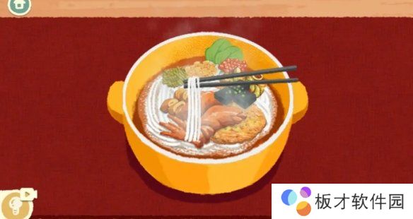 8、第八关:垂涎欲滴,依次加油、搅拌、倒入、开火、捞,然后先加入面开火,最后倒入配菜酱料开火即可摆盘。