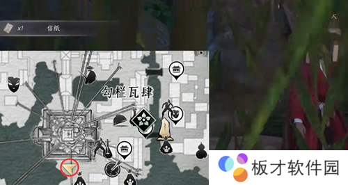 3、来到图中位置,在一棵树的旁边可以看到一封信纸。