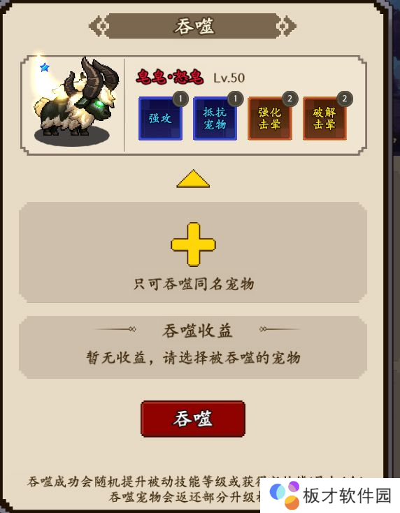 所谓的宠物提升,即是通过同名宠物的相互吞噬来增强星级。这一过程不仅会增强宠物的基础攻击、防御和生命值,还能促进其携带的四项技能进阶。