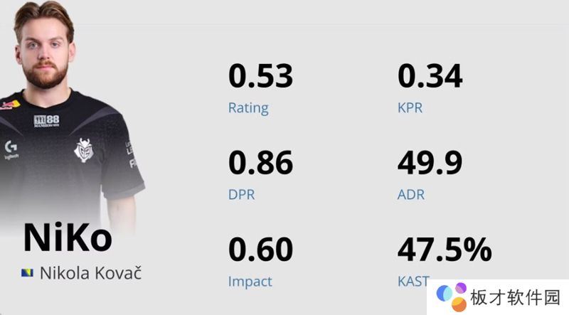 而NiKo本人的发挥非常惨淡,他在BO3中仅有0.47 rating,而本次赛事的rating也只有0.53。这也是他职业生涯中的最低大赛rating数据。