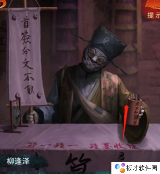 1、点击场景中的八不郎,点击它手上的签筒,得到下下签。