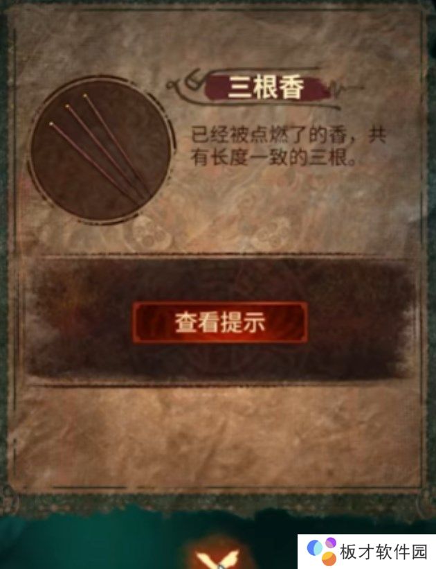 13、将铜钱块放在龟壳上,获得三根香和图纸线索。