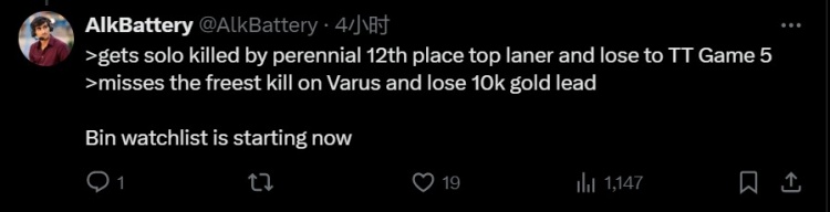 >被常年排名第12名的上单选手单杀,并在第五局输给TT战队。