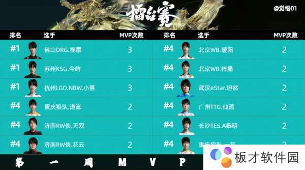 擂台赛第一周MVP次数排行:挽墨、今屿、小落前三,大家对谁的发挥印象最深刻?